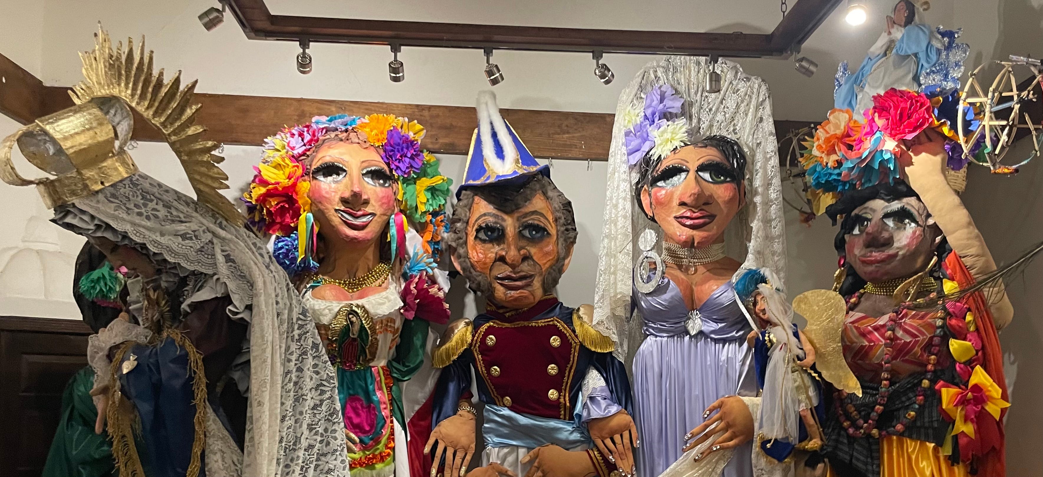 A lineup of mojigangas, giant wearable puppets, in a San Miguel de Allende gallery. Photo by author